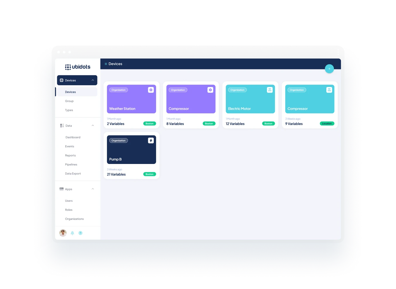 Ubidots admite múltiples protocolos de conectividad como MQTT, HTTP y Modbus, lo que lo hace compatible con una amplia gama de dispositivos IoT industriales, gateways y PLC. Puede empezar a enviar datos con solo unas líneas de código o mediante integraciones compatibles.