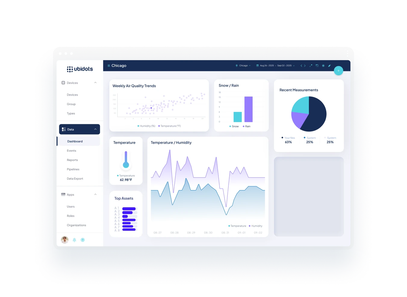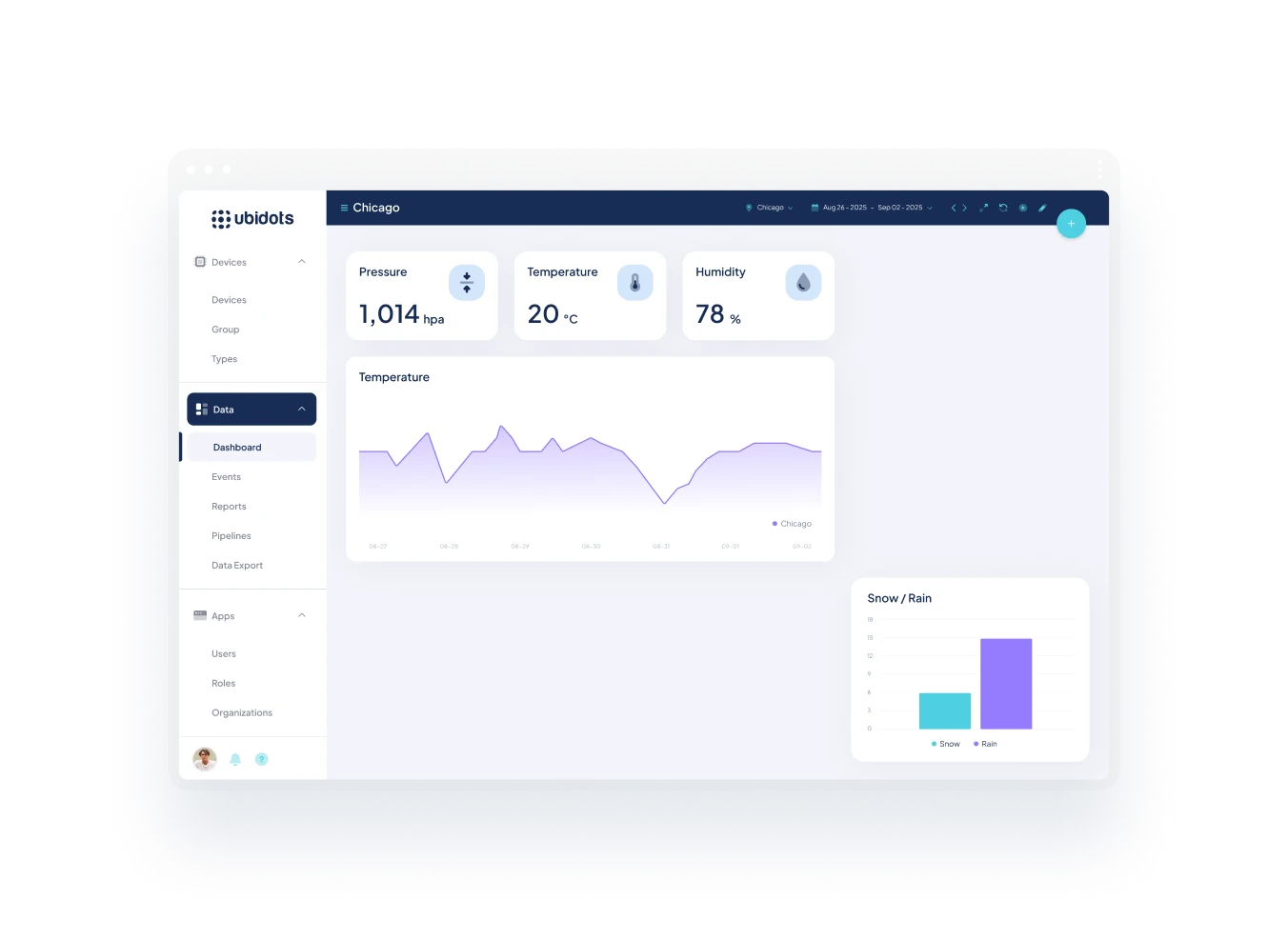Ubidots es una plataforma de Internet de las Cosas (IoT) que permite a las empresas recopilar, analizar y visualizar datos de sensores en tiempo real. Ayuda a transformar los datos brutos IoT en información práctica mediante dashboards, alertas e informes personalizables.